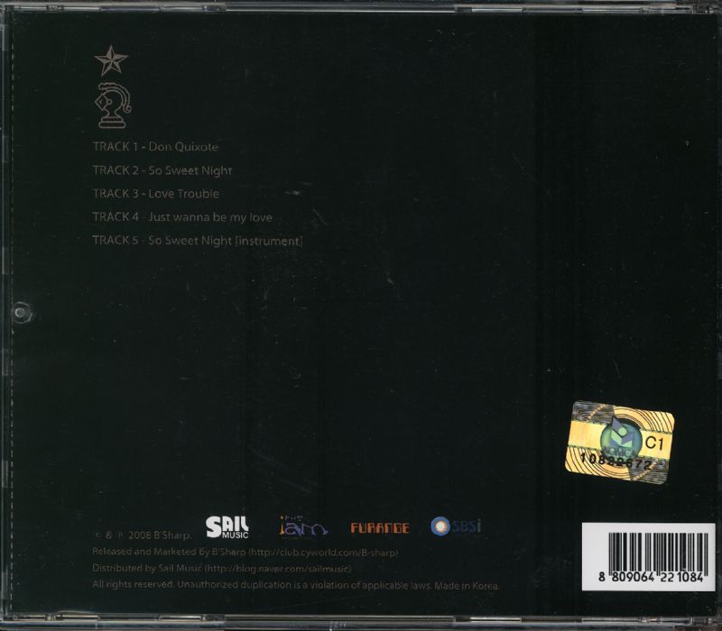 B'sharp의 음악적인 색깔을 한 가지로만 꼽을 수가 없다. 강렬한 트랜스계열의 'Don Quixote'로 포문을 여는가 했더니 유럽풍 Acid Funk의 'So Sweet Night'은 JAMIROQUAI (자미로꽈이)를 연상케 하고 바로 뒤따르는 곡인 'Love Trouble'은 90년대 한국 댄스 가요계를 풍미했던 Rave를 새롭게 재해석한 듯싶더니 마지막 곡인 'Just Wanna Be My Love'에서는 세련된 J-POP의 냄새가 물씬 느껴진다. 다소 중구난방인 듯 한 이런 트랙 구성들을 B'sharp은 자기들만의 색깔로 멋지게 버무려내었다.